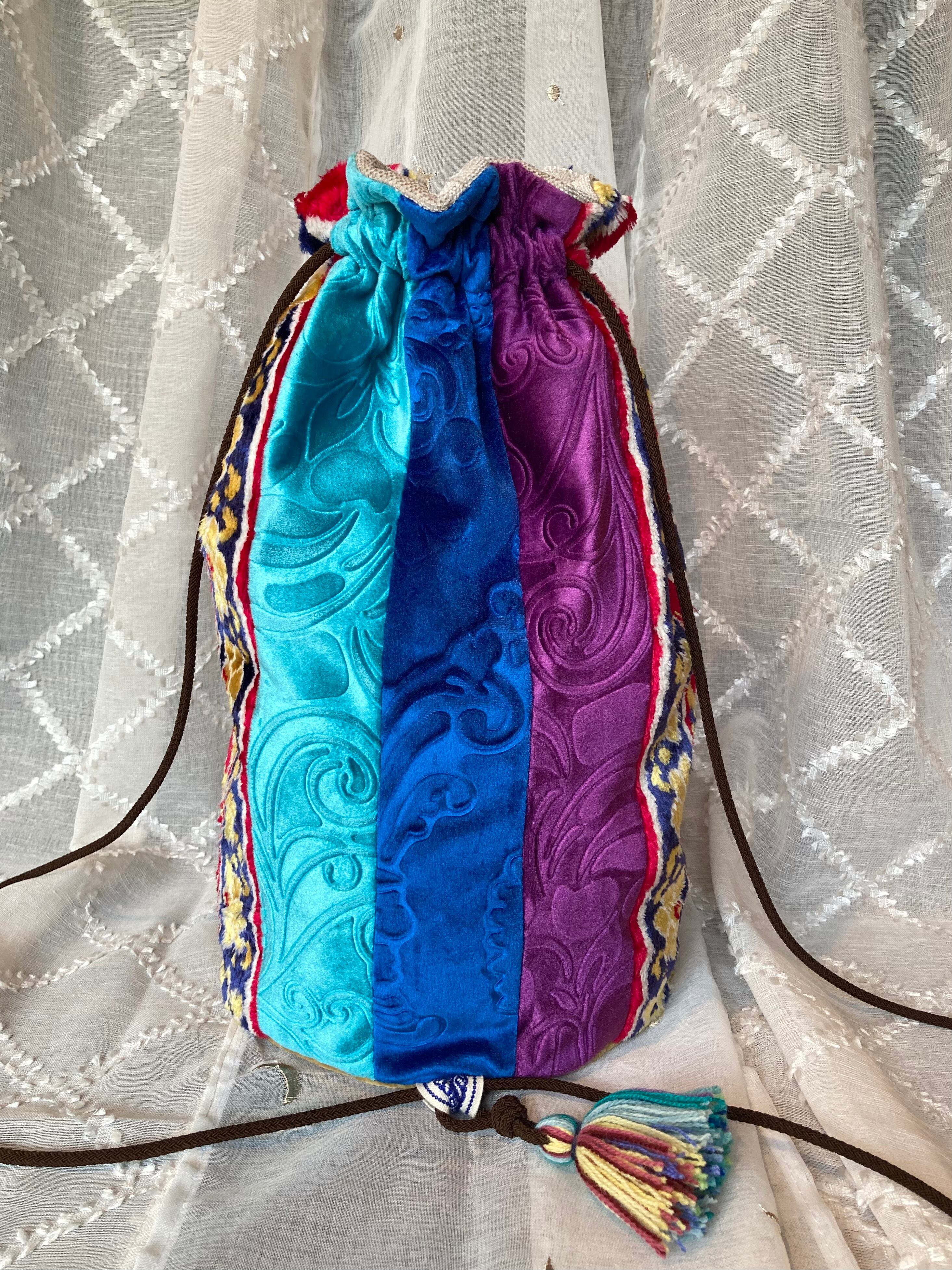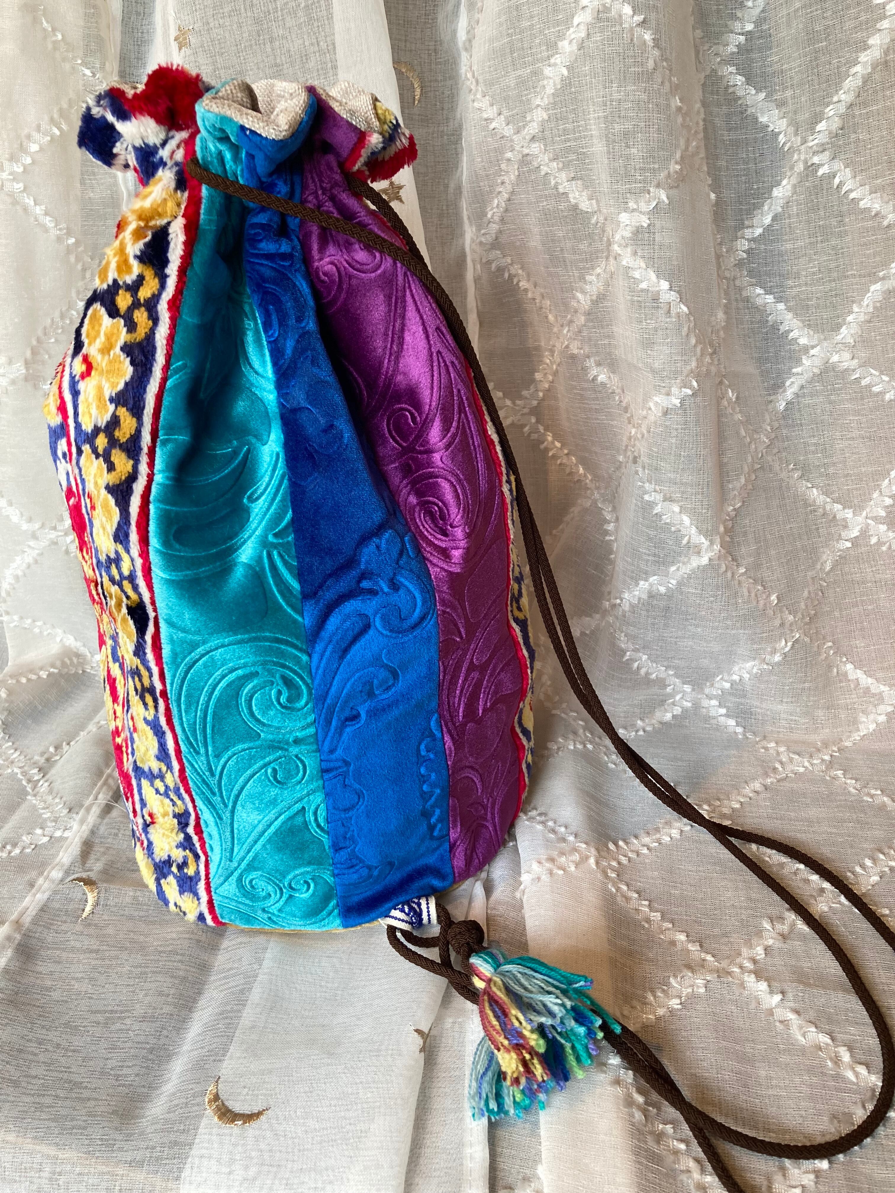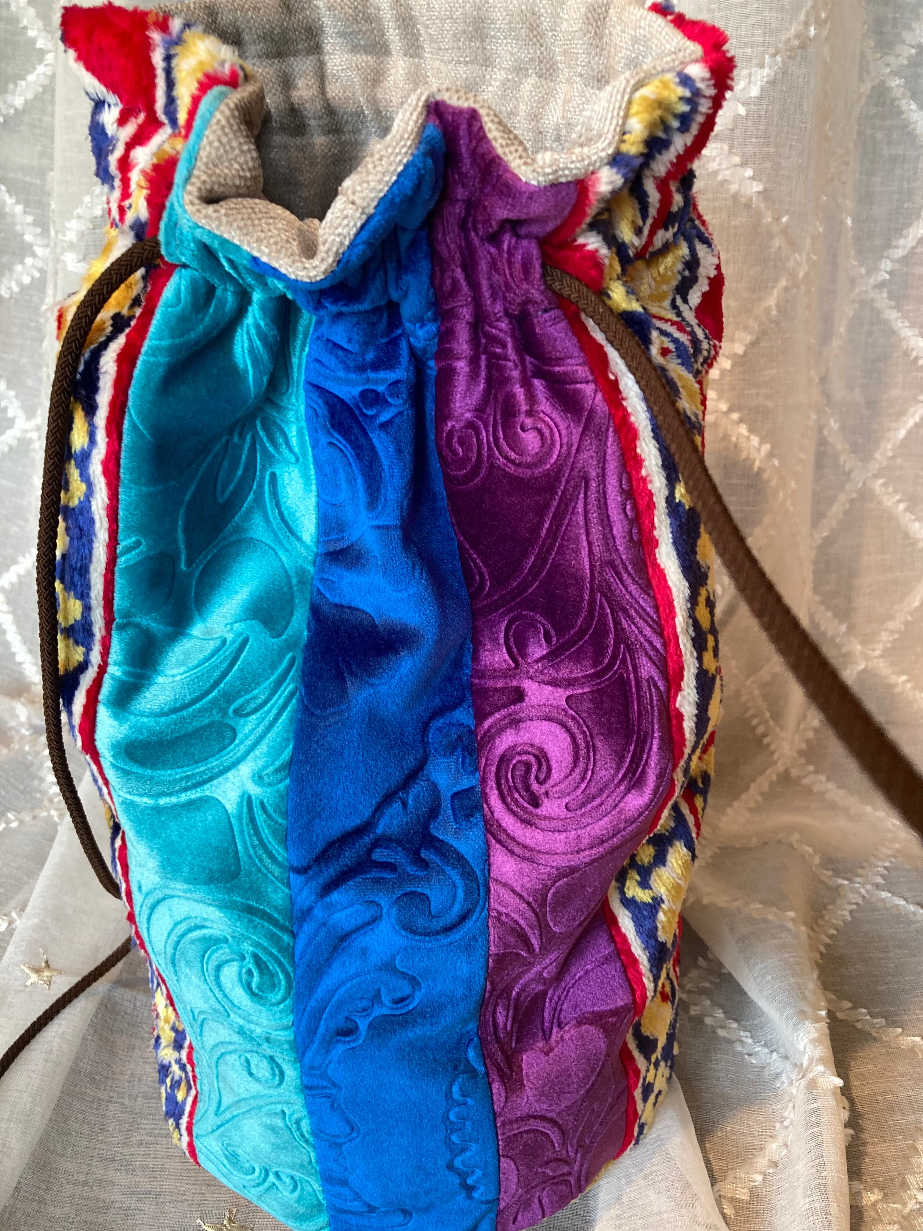 東欧の薄手ラグをベースに使ったnapzak、組み合わせたグラデーションがマジカルなカラーリングでお出かけ気分が上がります!