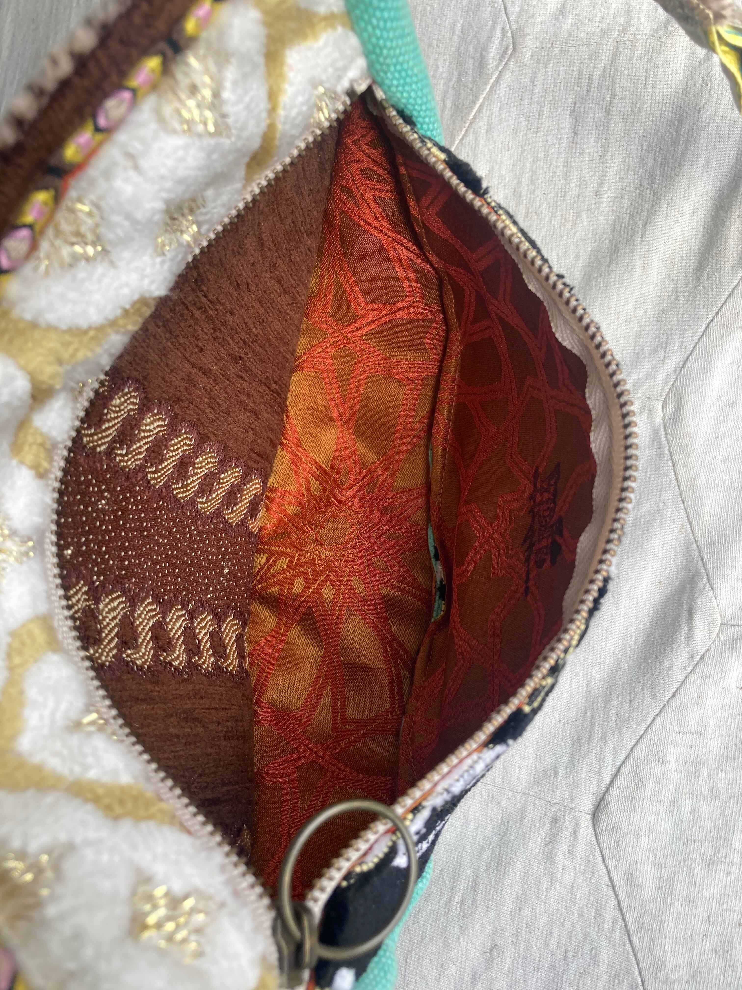 オリジナルデザインのウェストバッグ型ショルダーです。モロッコの上質な生地をメインにmixして、同じものが2つとない自由でカラフルな組み合わせで制作しています。