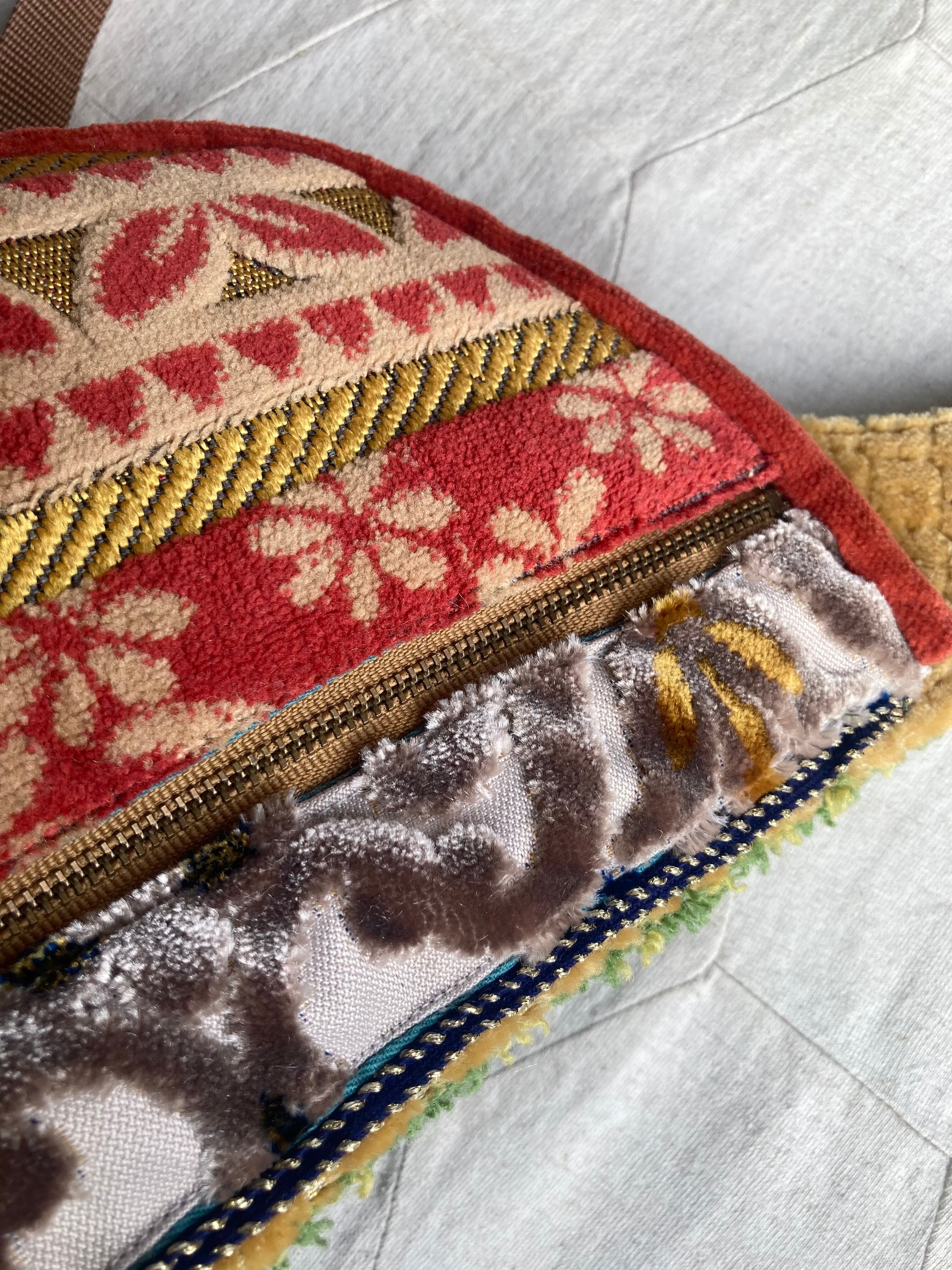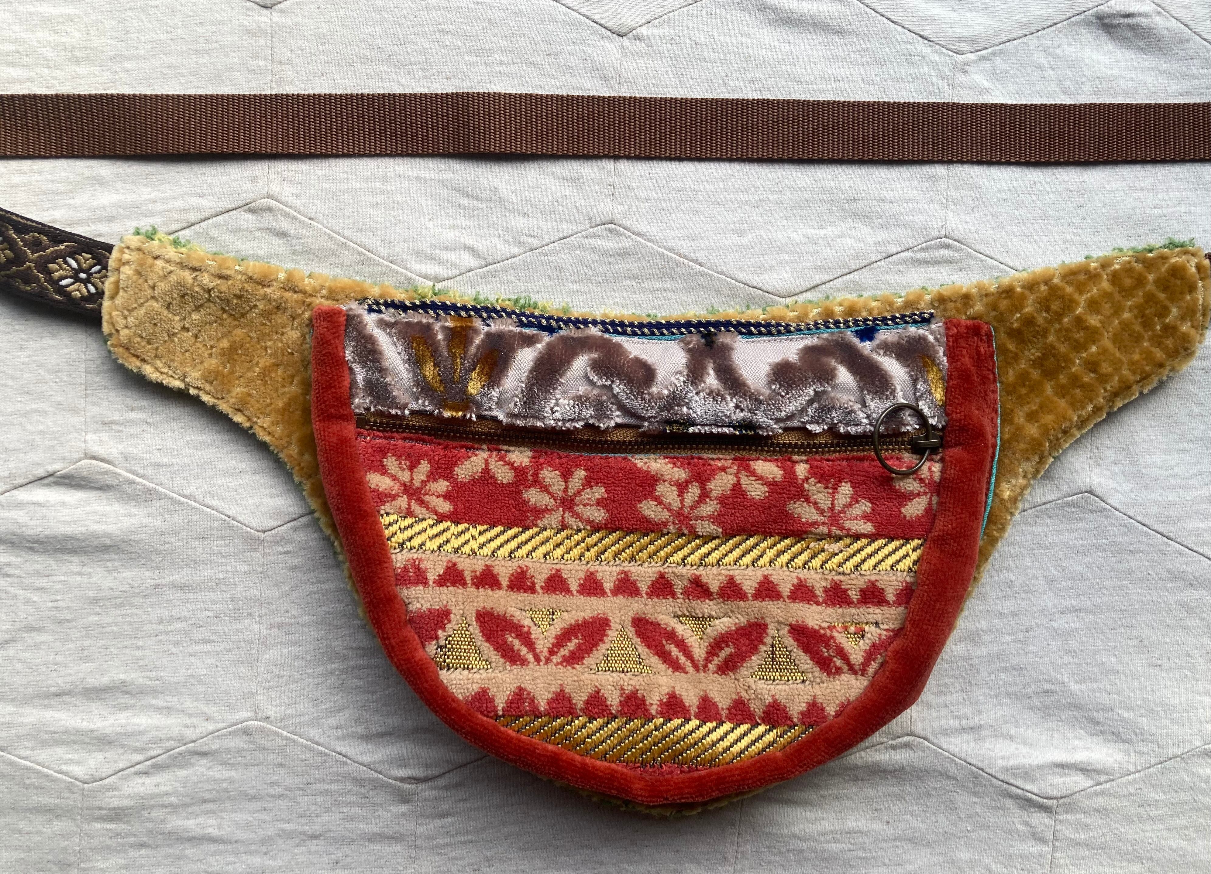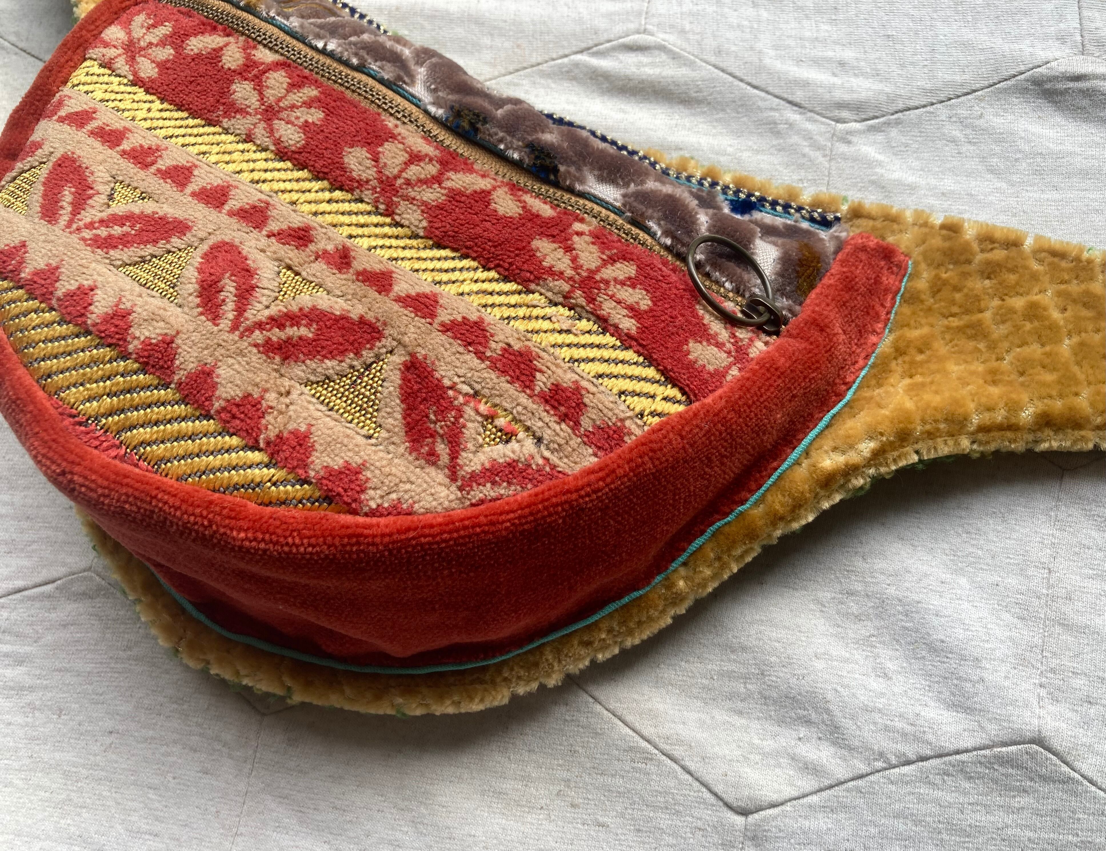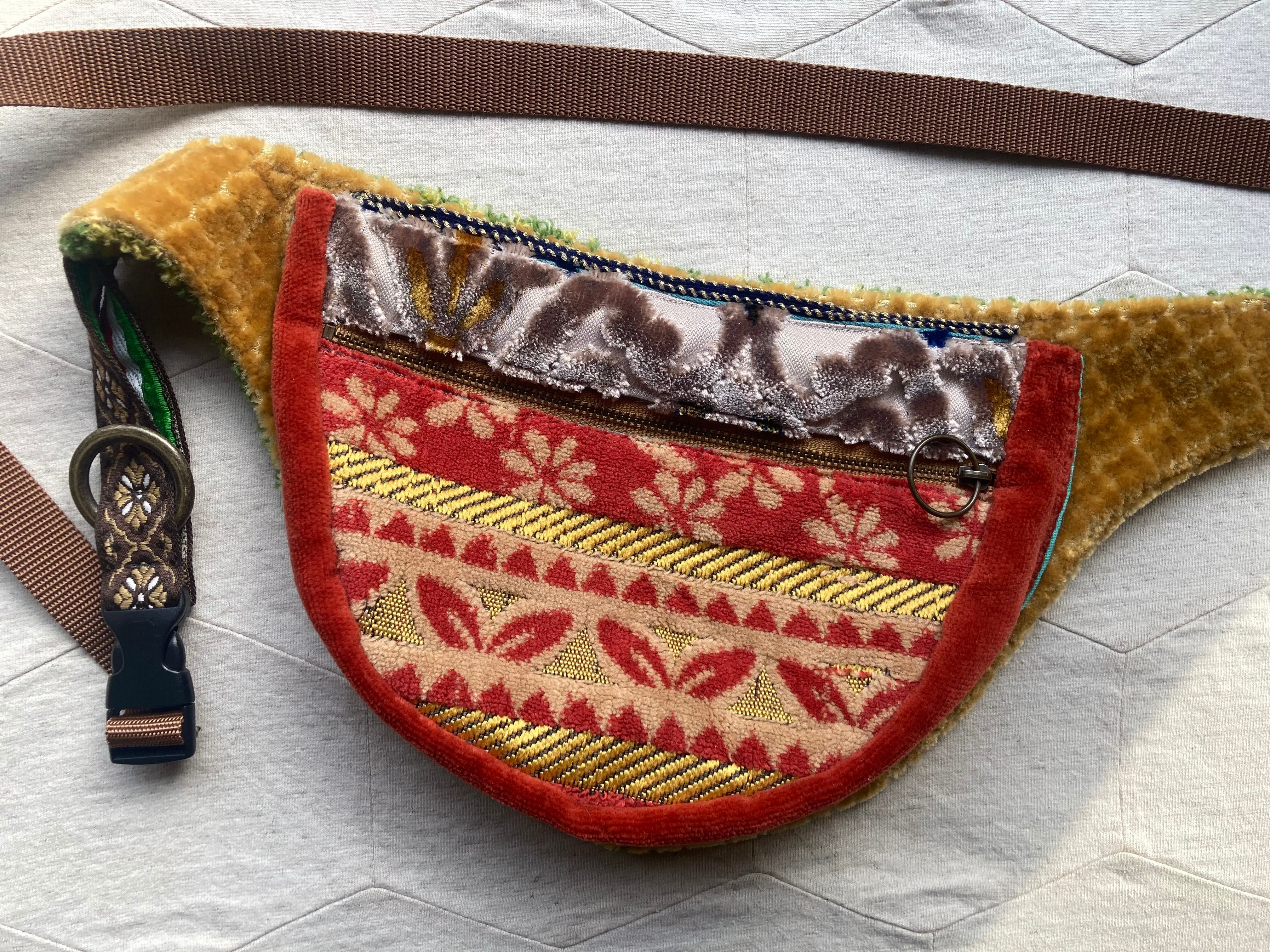 オリジナルデザインのウェストバッグ型ショルダーです。モロッコの上質な生地をメインにmixして、同じものが2つとない自由でカラフルな組み合わせで制作しています。