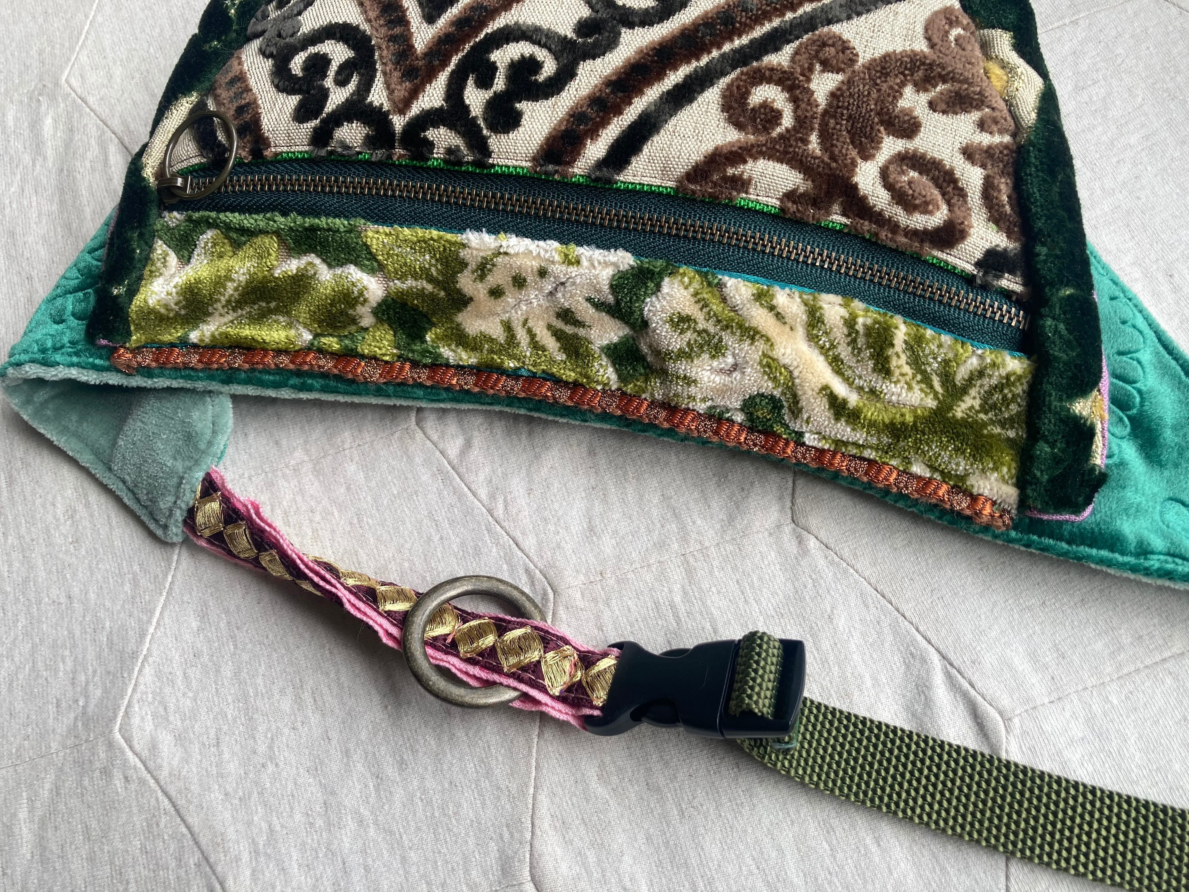 オリジナルデザインのウェストバッグ型ショルダーです。モロッコの上質な生地をメインにmixして、同じものが2つとない自由でカラフルな組み合わせで制作しています。