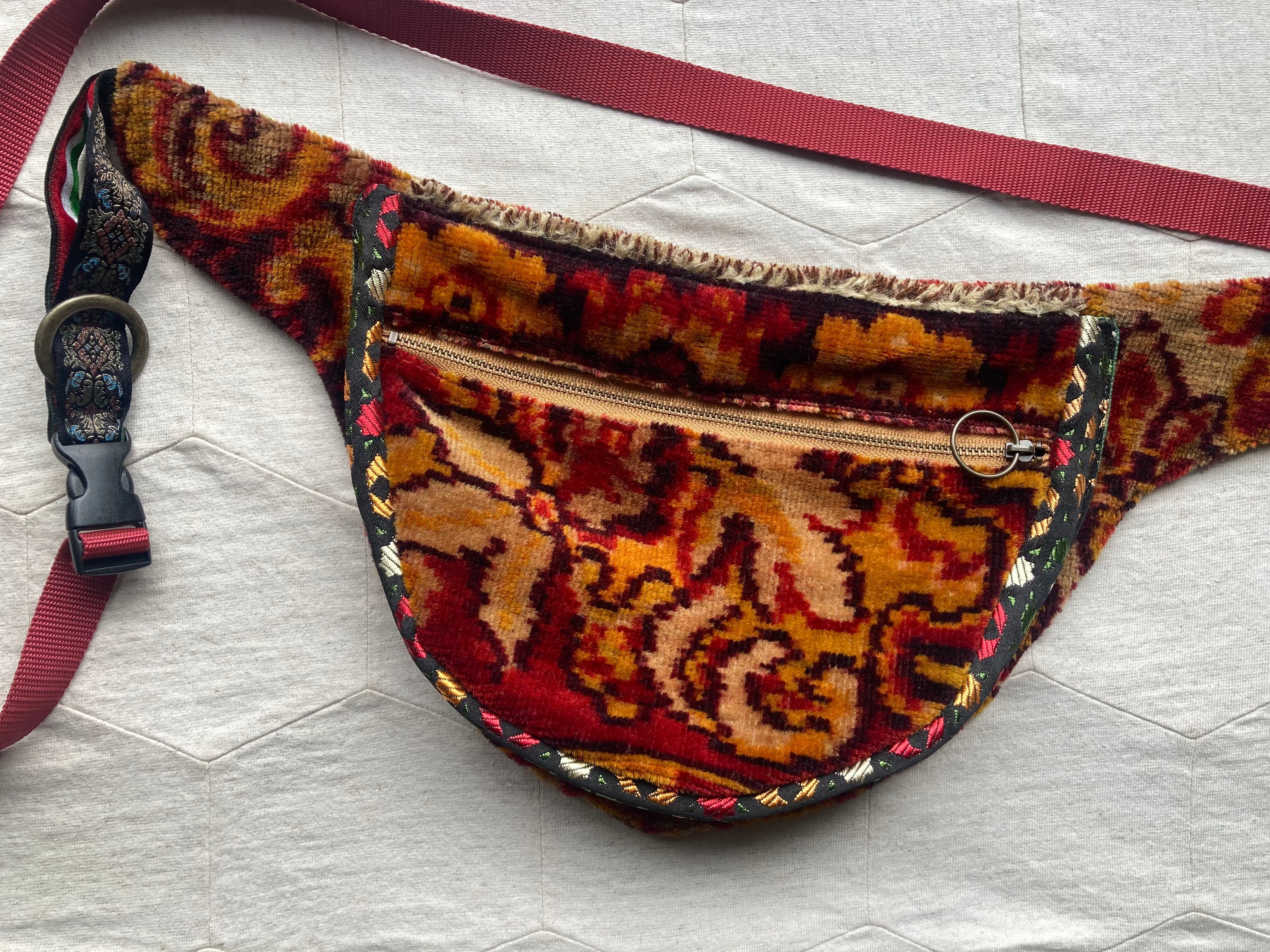 オリジナルデザインのウェストバッグ型ショルダーです。モロッコの上質な生地をメインにmixして、同じものが2つとない自由でカラフルな組み合わせで制作しています。